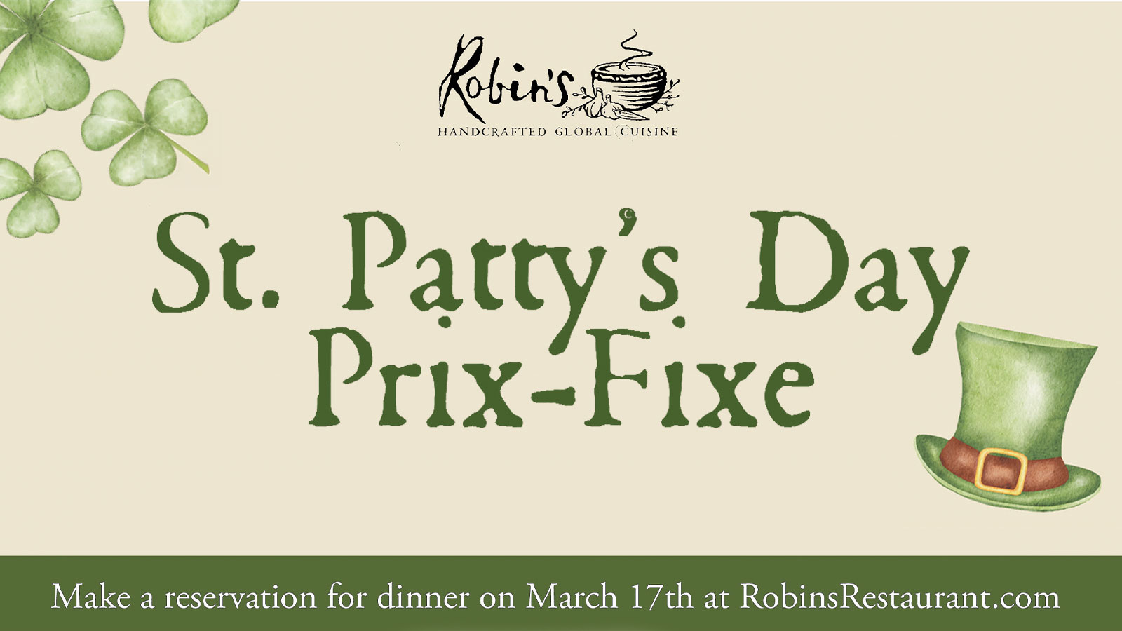 St Patty’s specials and prix fixe dinner at Robin’s |