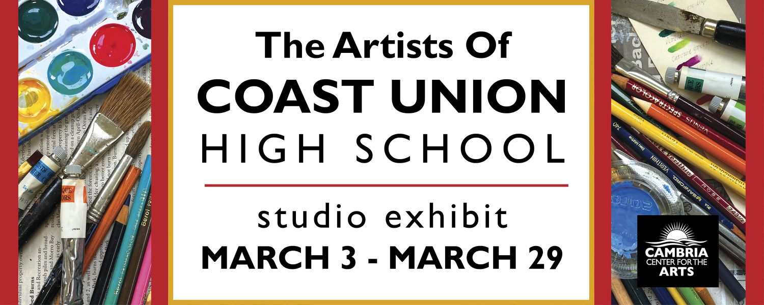 Explore the Coast Union High School Studio Exhibit at Cambria Center for the Arts this March featuring local student artwork. |