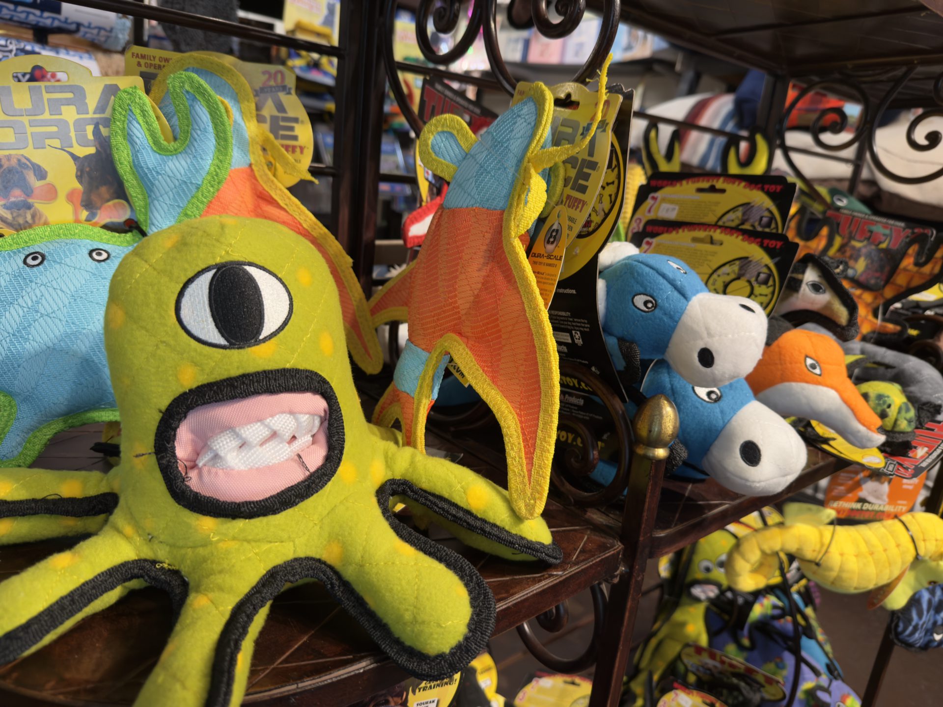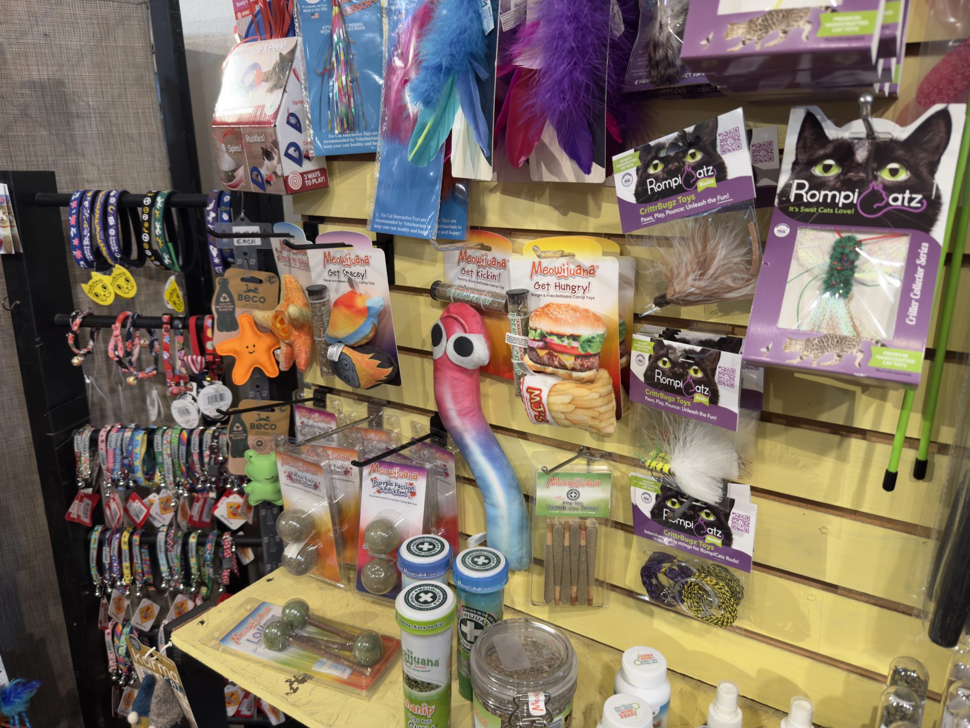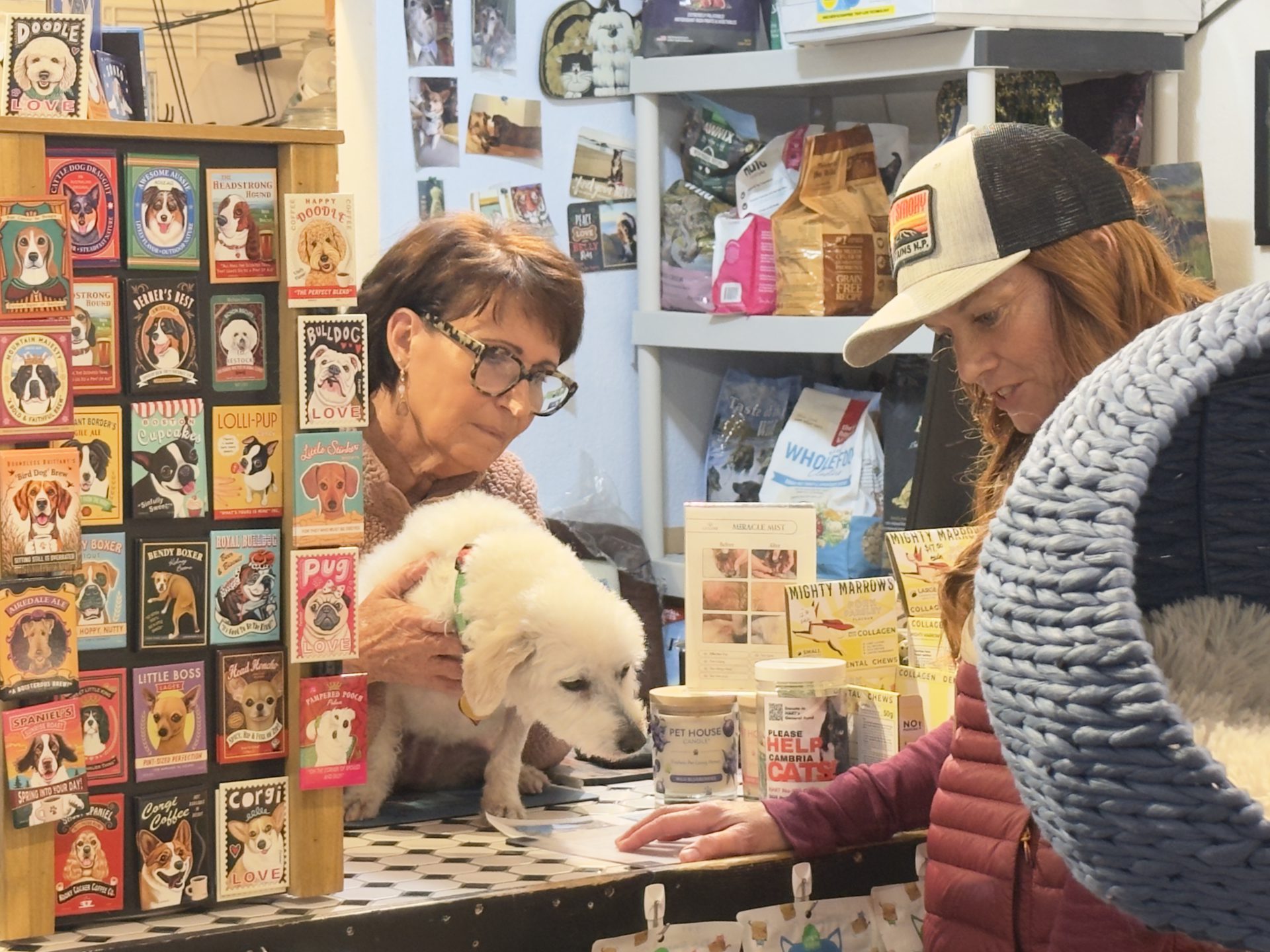 Customers don’t just walk in. They arrive with companions. Some eager, some shy, some already familiar with the space, pulling their owners toward a favorite corner of the shop.