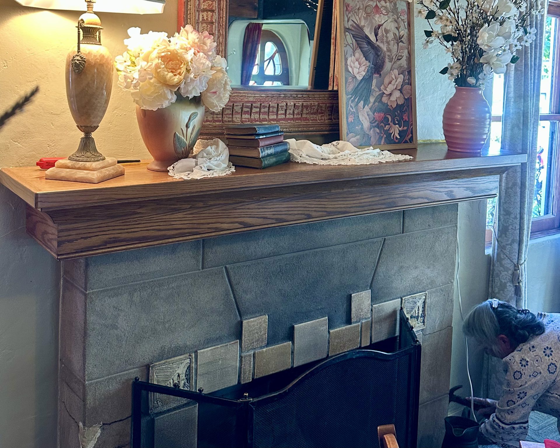 One room glows warmly around a fireplace on cool evenings.